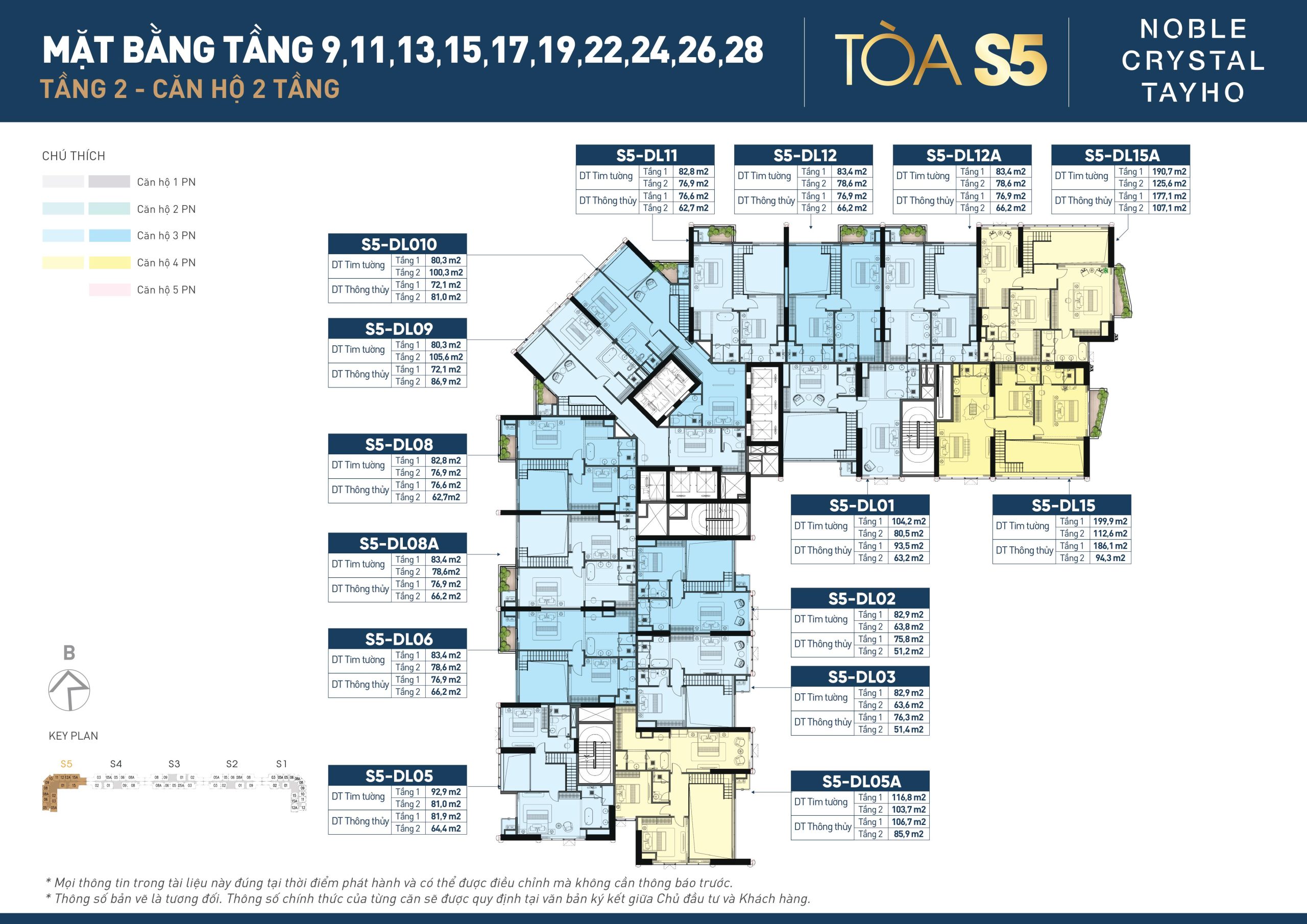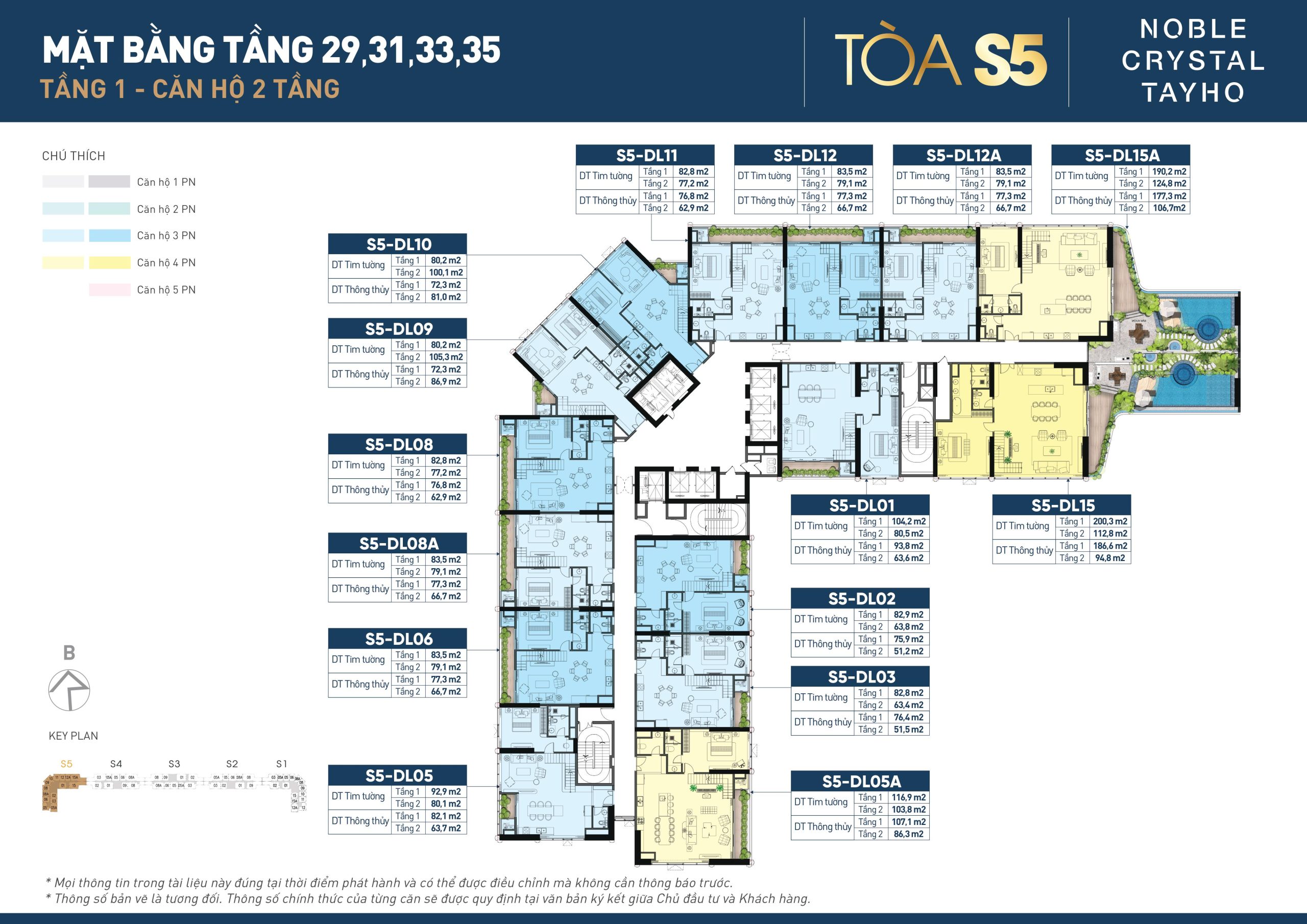 | Duplex | 4 phòng ngủ | 192 – 284m2 | 37 – 76 tỷ |